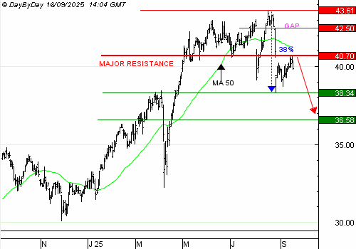 Le franchissement de la résistance majeure à 40,7 euros invaliderait ce scénario baissier.