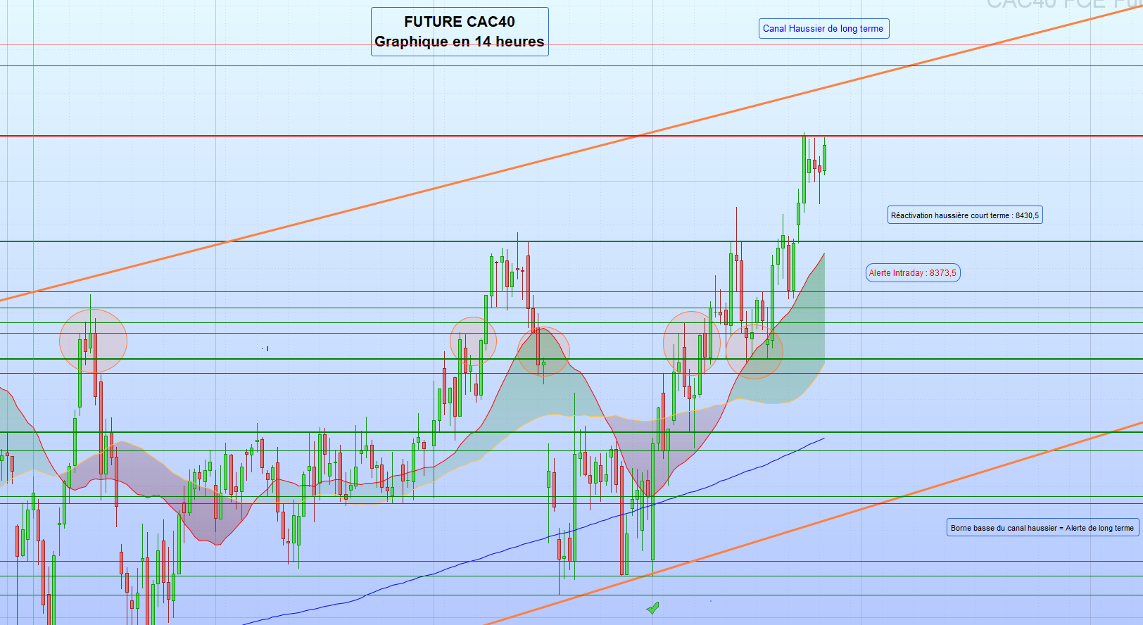 Les supports sont : 8430,5 puis 8373,5 voire 8355 et 8338 puis 8326 voire 8279,5 et 8212 puis 8191,5 voire 8139 puis 8131 et 8065 puis 8048 voire 8026 et 7991,5
