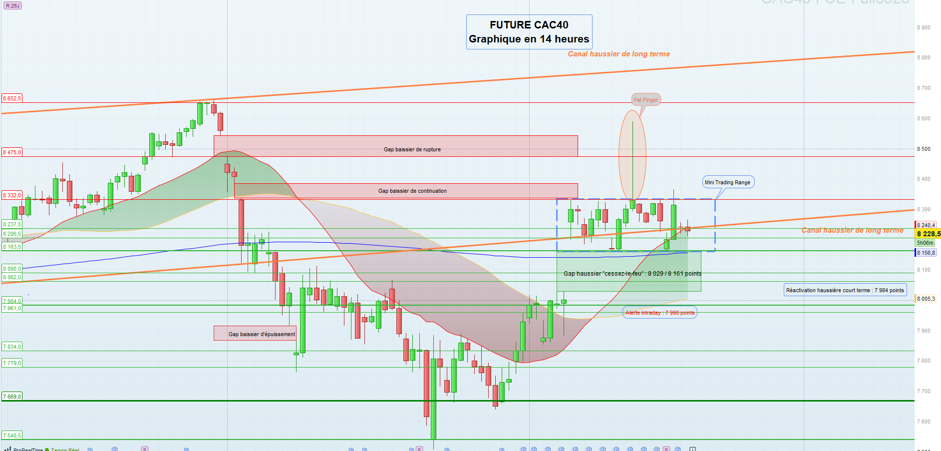 Les supports sont : 8237,5 puis 8201,5 voire 8162,5 et 8090 puis 8062 et 7984 voire 7961 puis 7834, 7719 et 7669 voire 7540,5