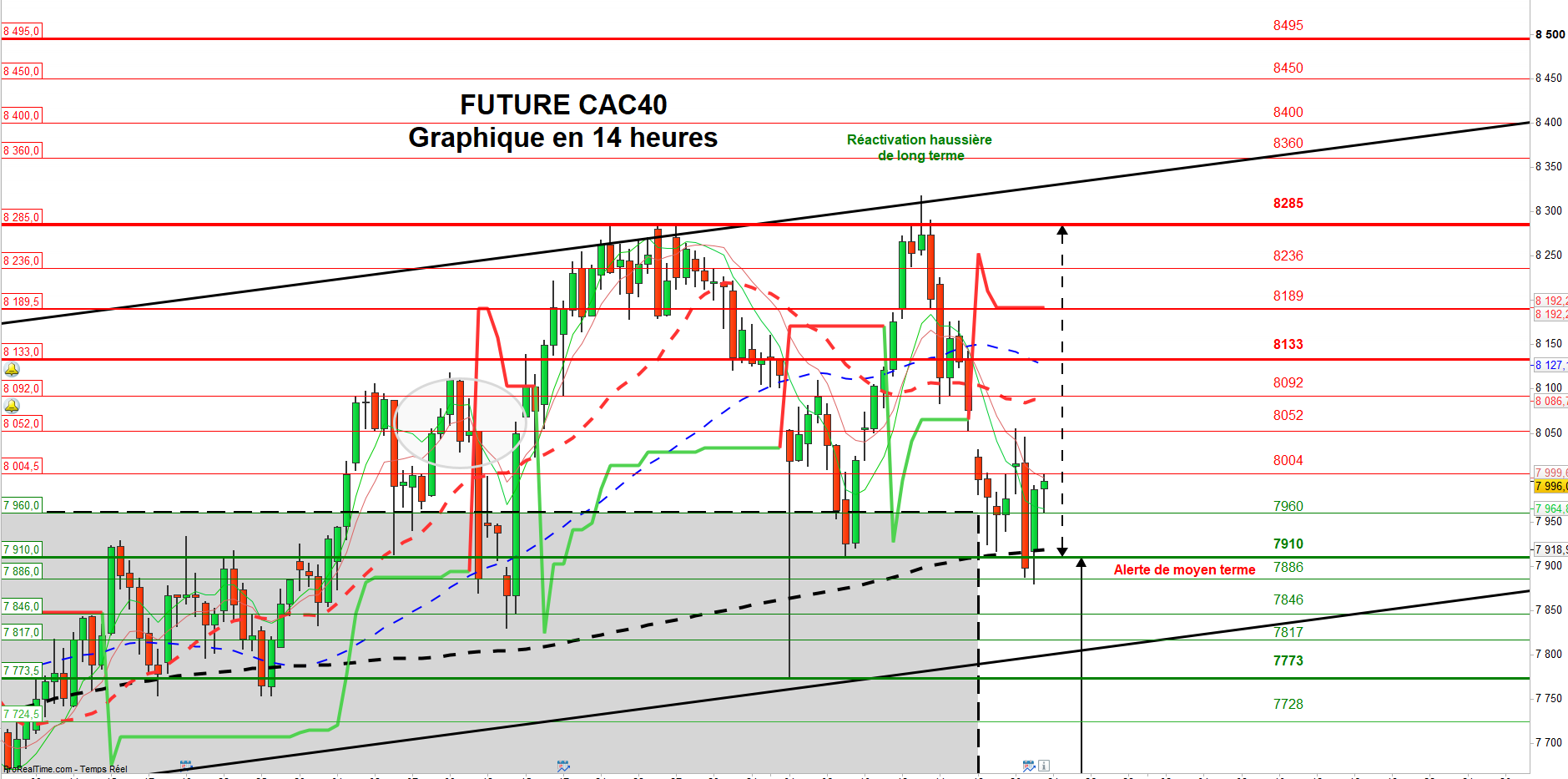 Les supports sont : 7960 voire 7916 et 7886 puis 7846 voire 7818 et 7784 puis 7728 voire 7634 et 7550 voire 7418 puis 7287,5 et 7192 voire 7050 puis 6878.