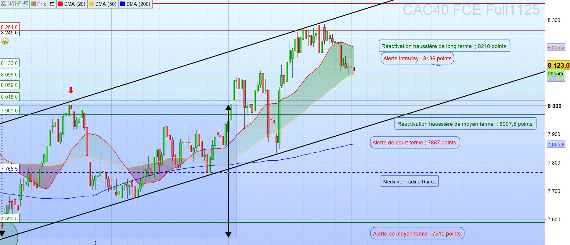 En intraday, la tendance est baissière en dessous de 8153 points.