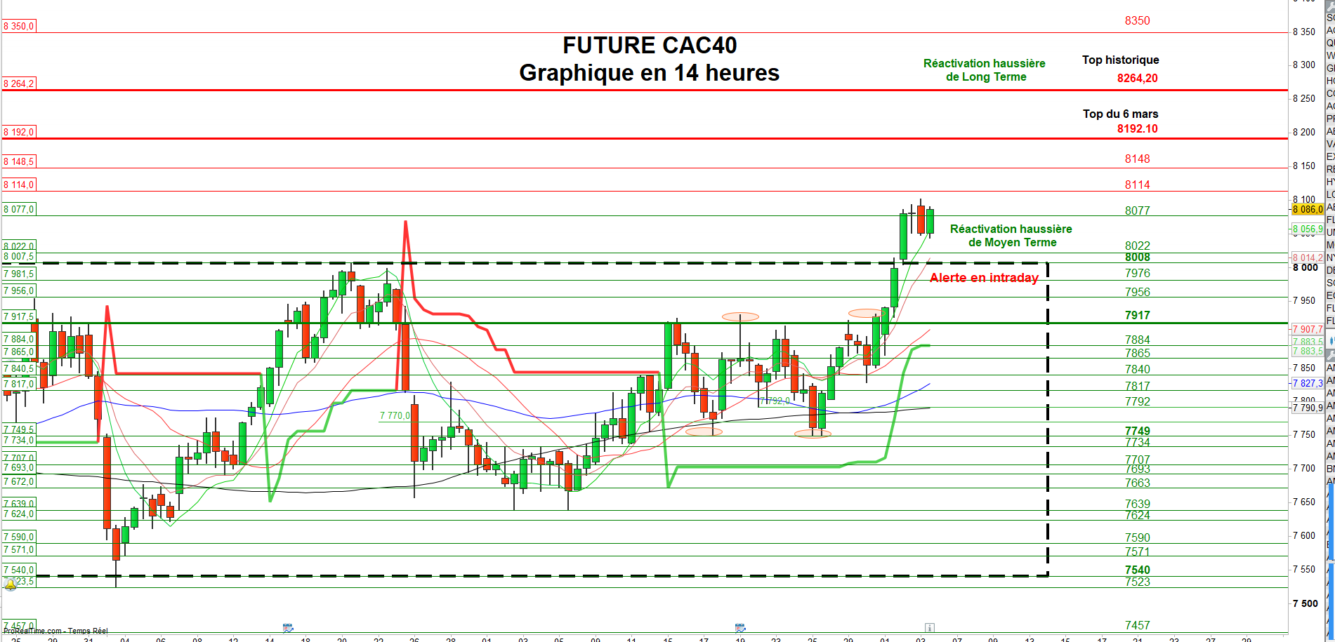 Les résistances sont : 8114 et 8148 puis 8192 (top du 6 mars) et 8264 (top historique) puis 8350 voire 8390/8400 et 8450