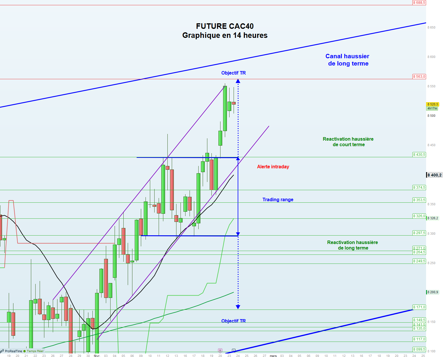 En intraday, la tendance est haussière au-dessus de 8430,5.