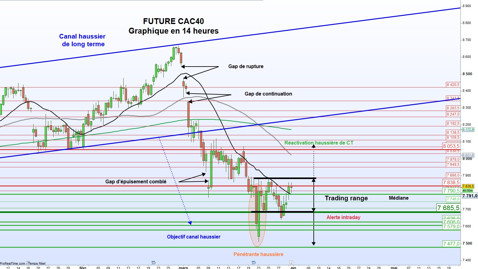 Les supports sont : 7790,5 voire 7746 et 7709 puis 7685,5 voire 7626 puis 7606 et 7579 voire 7477 puis 7328,5 et 7200 voire 7092,5 puis 7466,5 et 7330 voire 7164.