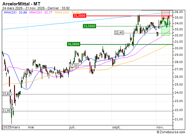 ArcelorMittal : Vente du turbo PUT Vontobel SW57V (+13.53%) (SW57V)