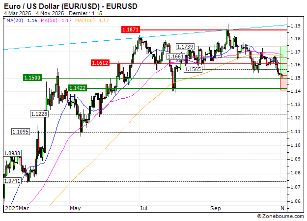 La proximité du niveau actuellement testé confère un timing intéressant pour mettre à profit un rebond technique dans les séances à venir en direction des 1.174 USD, d'autant plus avec les récentes données macroéconomiques, attestant de la faiblesse de l'économie américaine.