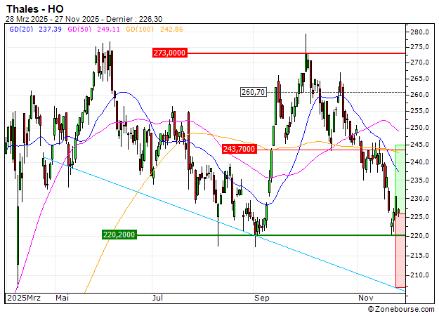 Le titre Thales a subi de lourds dégagements au cours des dernières séances et revient au contact de niveaux importants.