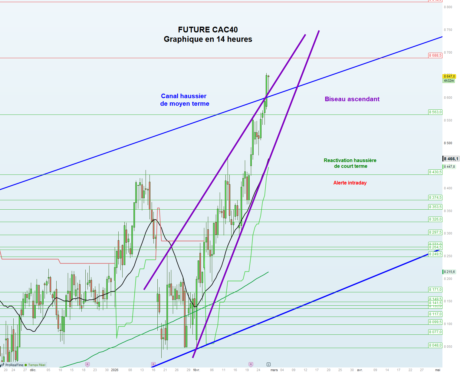 Les supports sont : 8563 et 8430,5 puis 8374,5 voire 8353,5 et 8326 puis 8297,5 voire 8271 et 8264,5 puis 8249,5 voire 8171 puis 8149,5 et 8141,5 puis 8135 voire 8117 et 8099,5 puis 8077 voire 8048 et 7990 voire 7944 puis 7924,5 et 7895,5 voire 7881 puis 7873 et 7853 voire 7831 puis 7740,5 et 7615,5 voire 7574 puis 7466,5 et 7330 voire 7164.