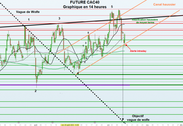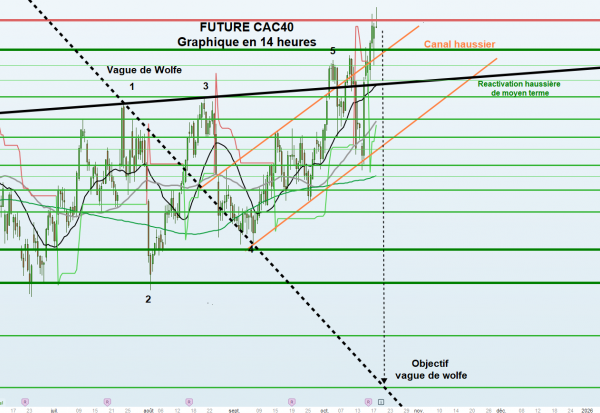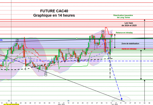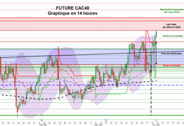 À l’inverse, une rupture du support des 7 910 points confirmerait le signal d’alerte observé vendredi et ouvrirait la voie à une poursuite de la phase de consolidation. Une cassure plus nette du point bas de vendredi, à 7 865,5 points, renforcerait alors le risque d’une dégradation plus prononcée de la tendance.