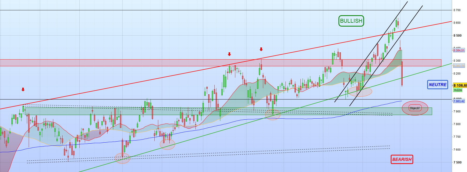 Les supports sont : 8430,5 puis 8373,5 voire 8355 et 8338 puis 8326 voire 8279,5 et 8212 puis 8191,5 voire 8139 puis 8131 et 8065 puis 8048 voire 8026 et 7991,5