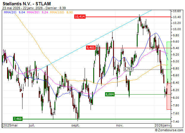Le titre Stellantis N.V. a subi de lourds dégagements au cours des dernières séances et revient au contact de niveaux importants.